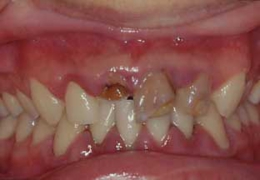 右の症例写真は当院に通われている患者さんの口腔内写真です。患者さんが85歳の時の写真です。